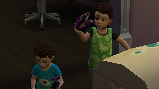 As soon as the children were born and tucked safely into their basinets, mother and children all prompty fell deeply to sleep. All except little Laura. Laurent who had managed to put on a shirt for the Sim Social Service worker who had solemly brought the three basinets along, cautiously walked over to take his first look at the children.